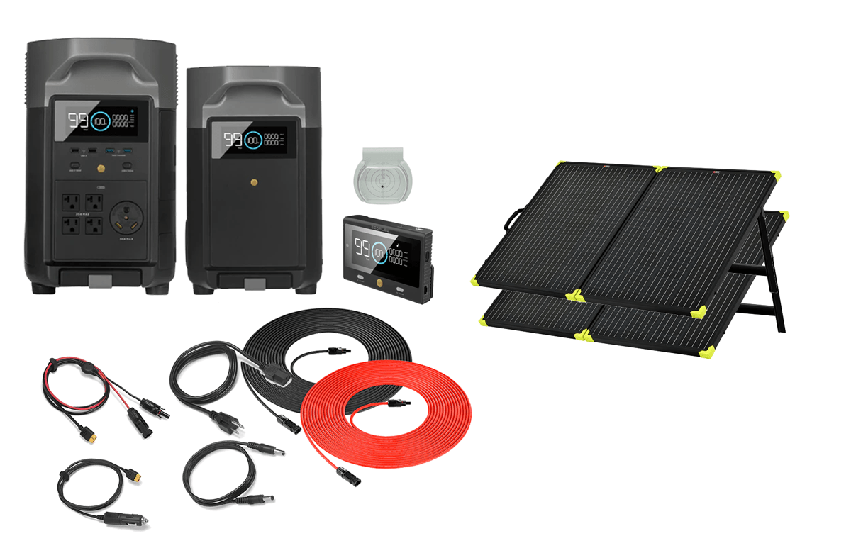 This complete power system includes both the New EcoFlow Delta Pro, One Delta Pro Extra Battery, and 400 to 1600 Watts of Folding Portable Solar Panels with stands for superior performance. This 7,200 Watt-hour complete solar generator system provides plenty of power to keep your products running 24 hours per day. Choose from the four options on this page of 400, 800. 1200 or 1600 Watts of Folding rigid solar panels with built-in stands. This system is also perfect for emergency or travel or camping use. Just fold the panels and store them or leave them out as long as needed. With these folding rigid panels with built-in stands, you are set for any kind of emergency, camping or off-grid quick setup.